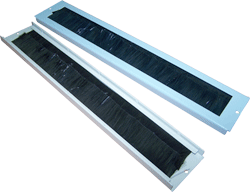 Дополнительная информацияОтверстия для щеточного ввода находятся в верхней и нижней панелях шкафа. Использование щеточных вводов позволяет защитить оборудование в шкафу от проникновения пыли и грязи, снижает риск повреждения кабеля о края вводного лючка, обеспечивает частичную фиксацию кабеля, вводимого в шкаф. Материал - металлическая рама и щетина из ПВХ