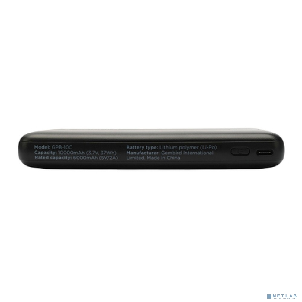 НазваниеGembird Портативный аккумулятор, 10000мАч, 2A, 4 встр.кабеля, черный (GPB-10C)