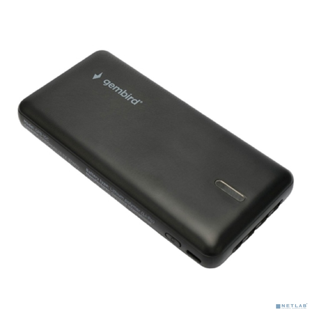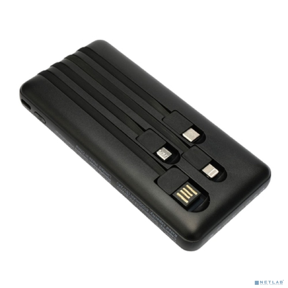 Gembird Портативный аккумулятор, 10000мАч, 2A, 4 встр.кабеля, черный