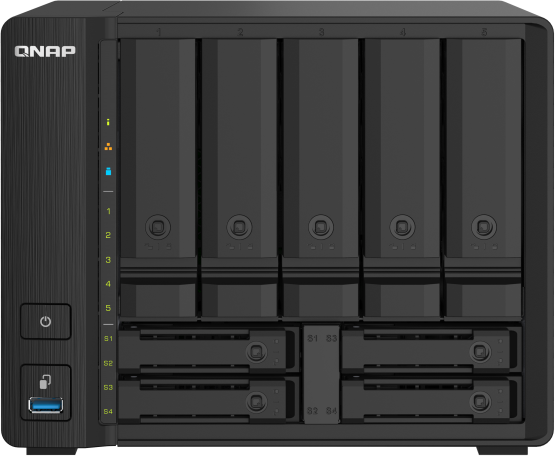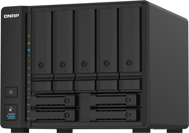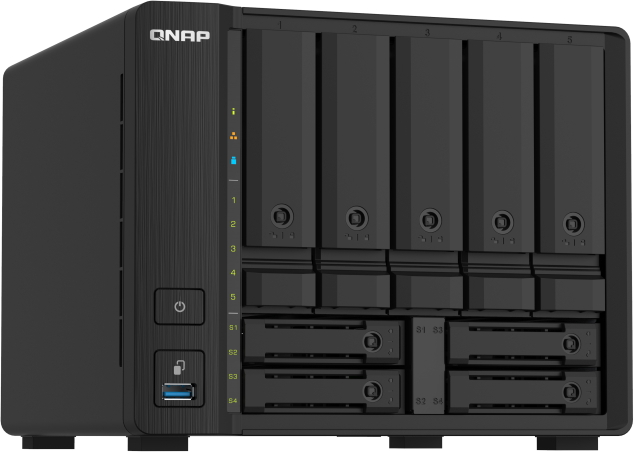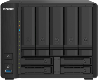 ОсобенностиFlash-память 512MB. 5 слотов для накопителей 3.5"/2.5" (до 18TB каждый) и 4x для 2.5" (до 4TB). 2 порта RJ45 2.5G и 2 порта SFP+. Синхронизация файлов между несколькими устр-ми. Выборочная синхронизация