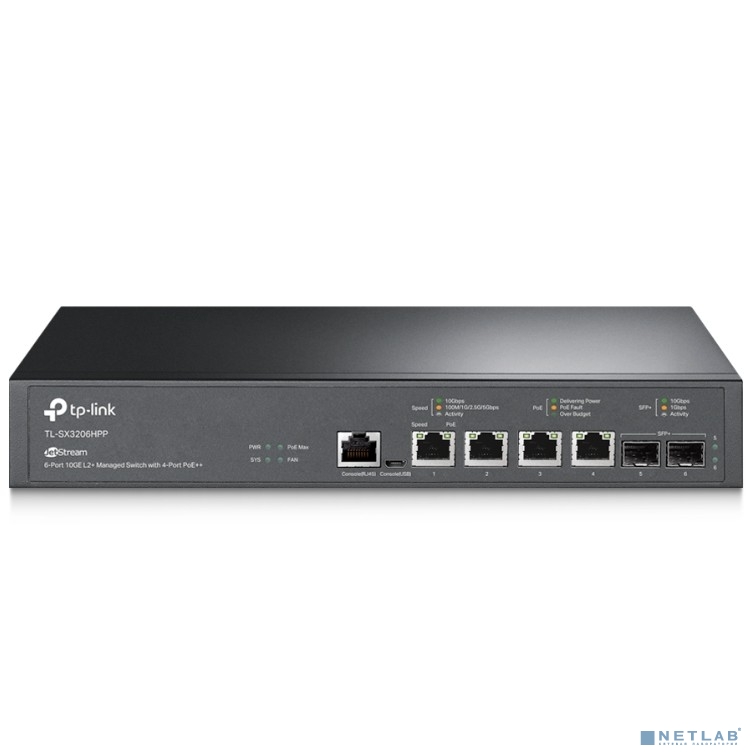 Коммутатор Коммутатор/ JetStream™ 4-Port 10GBase-T and 2-Port 10GE SFP+ L2+ Managed Switch with 4-Port PoE++