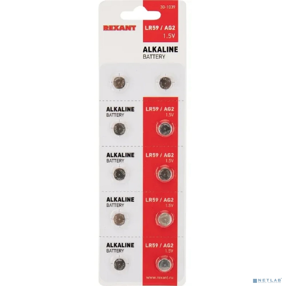 НазваниеRexant (30-1039) Батарейка часовая LR59, 1,5В, 10 шт (AG2, LR726, G2, 196, GP96A, 396, SR726W) блистер