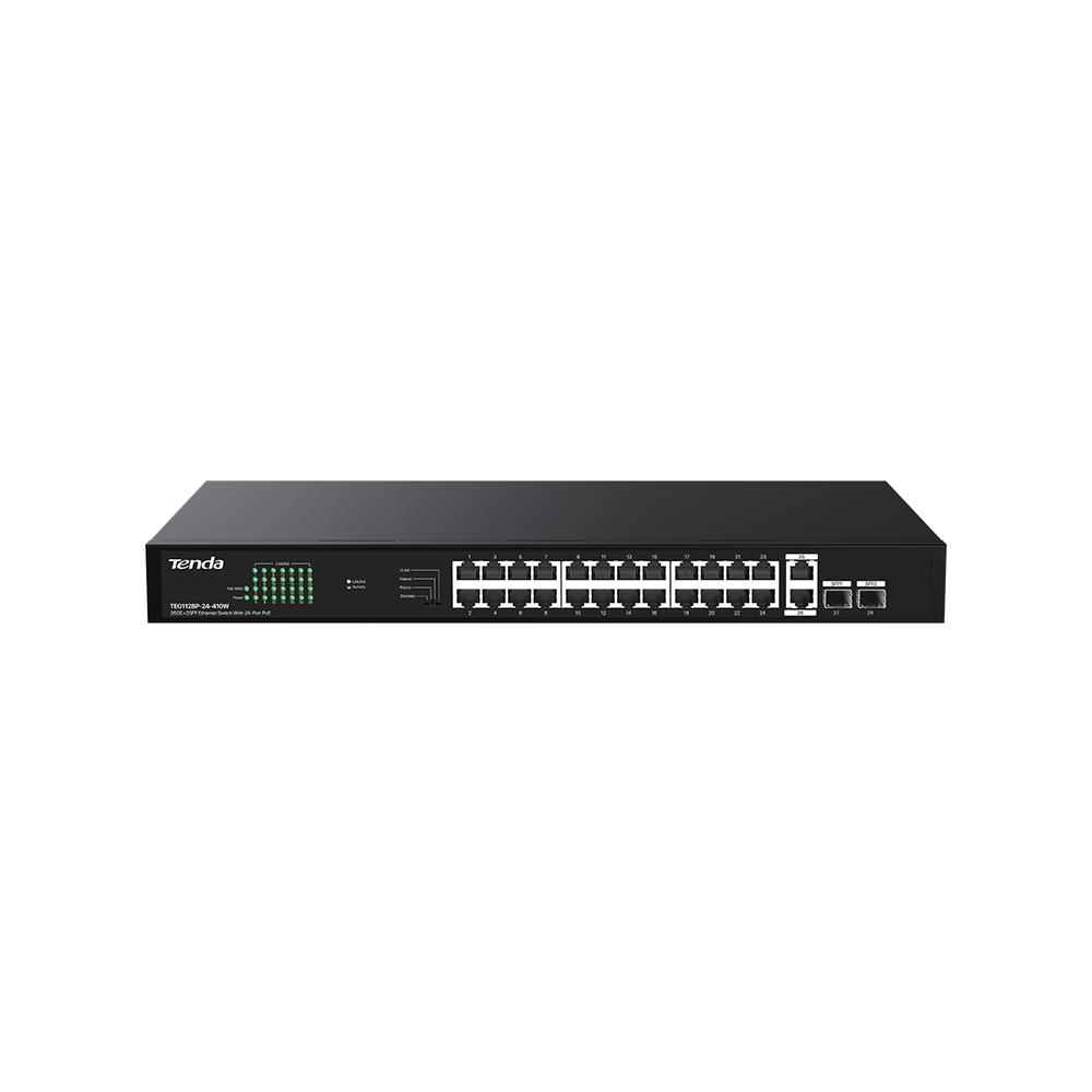 Коммутатор Коммутатор/ Tenda TEG1128P-24-410W Коммутатор неуправляемый PoE, 28 порта, 24x1 Гбит/с, PoE 24х30 Вт